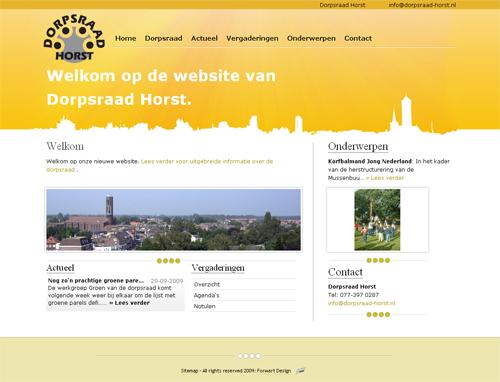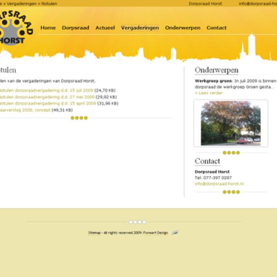De grafische vormgeving van de website is modern en sluit aan bij de huisstijl van de dorpsraad. De herkenbare ‘skyline’ van Horst komt terug in het ontwerp van de website. Om de website te onderhouden is deze voorzien van een Content Management Systeem (CMS). Hiermee kunnen de leden van de dorpsraad elk onderdeel van de website zelf bijhouden.