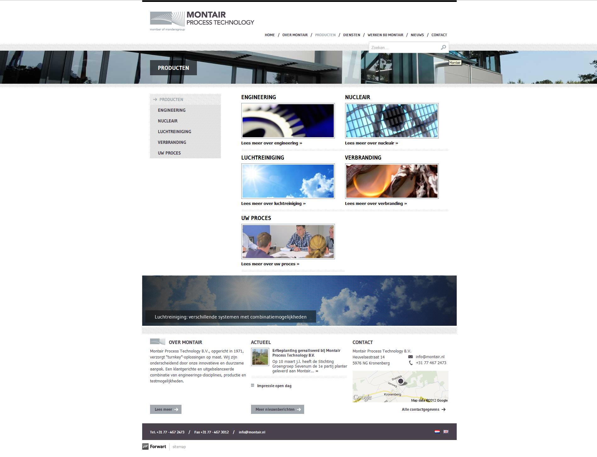 De expertise en kwaliteit van het bedrijf uit Kronenberg komen terug in het ontwerp van de nieuwe website. Op de homepage wordt het bedrijf aantrekkelijk gepresenteerd en kan de bezoeker direct een keuze maken uit de belangrijkste diensten en producten van Montair.