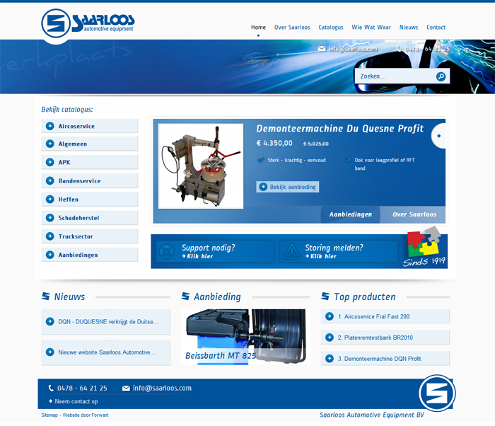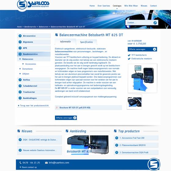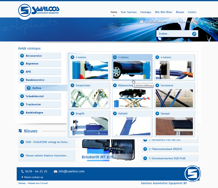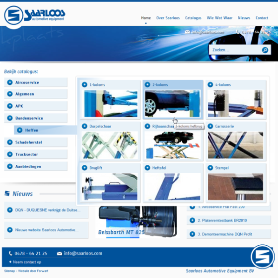 Het helder gestructureerde menu is opgedeeld in de diverse rubrieken waarin Saarloos actief is. Bandenservice, APK, hefapparatuur, aircoservice, etc.. Met slechts enkele klikken kan de bezoeker alle informatie vinden en zich uitgebreid oriënteren.