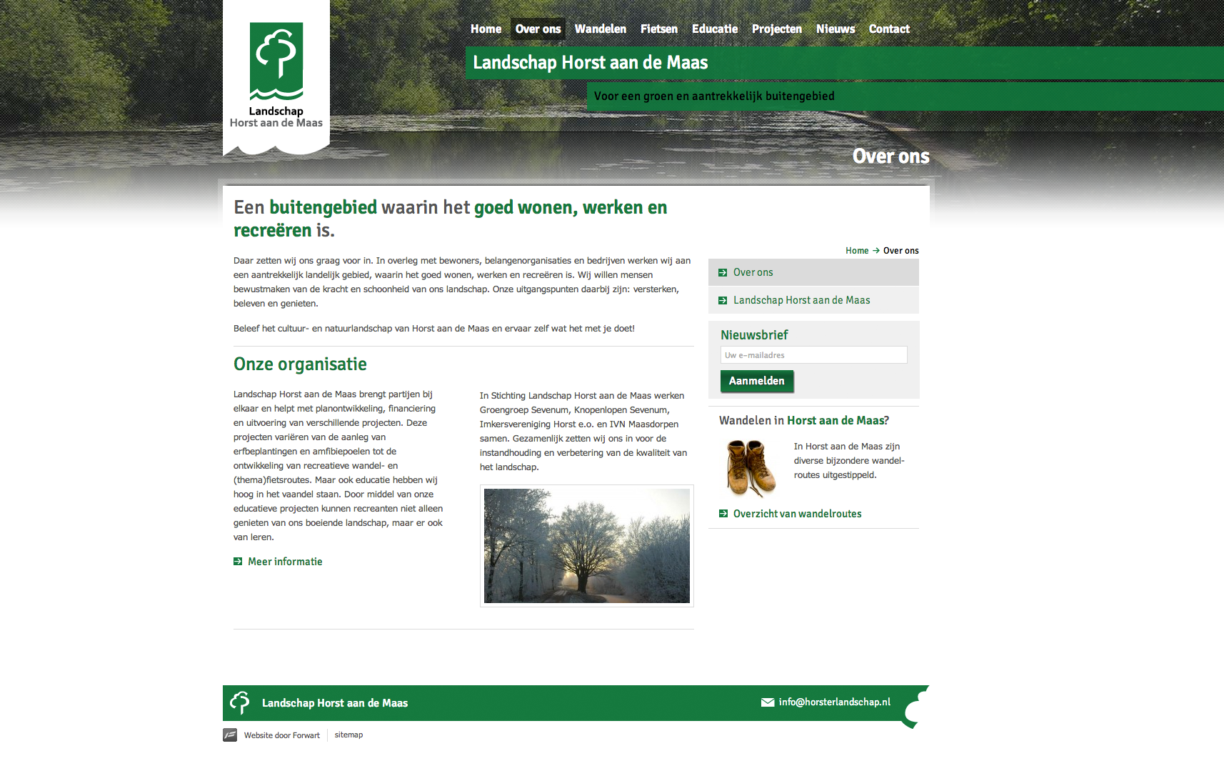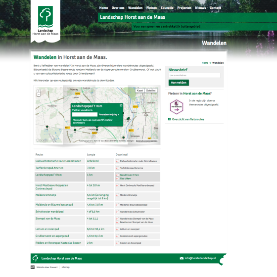 Het landschap van de gemeente Horst aan de Maas en de expertise van de stichting komen uitgebreid tot uiting op de nieuwe website. Op de homepage wordt de stichting aantrekkelijk gepresenteerd en kan de bezoeker direct een keuze maken uit de belangrijkste informatie van de website. Zo kan bijvoorbeeld direct genavigeerd worden naar diverse wandel- en fietsroutes in de gemeente en informatie rondom erfbeplaning.