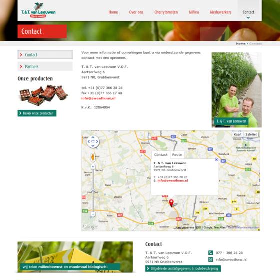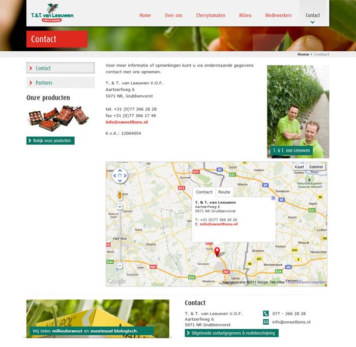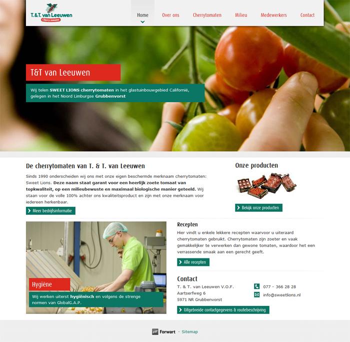 Encore heeft voor T.&T. van Leeuwen een nieuwe website gerealiseerd. T.&T. van Leeuwen is al sinds eind jaren ’80 gespecialiseerd in het kweken van cherrytomaten. Het bedrijf dat is gevestigd op het glastuinbouwgebied Californië, in het Noord Limburgse Grubbenvorst, vermarkt de cherrytomaten onder de naam “Sweet Lions”.