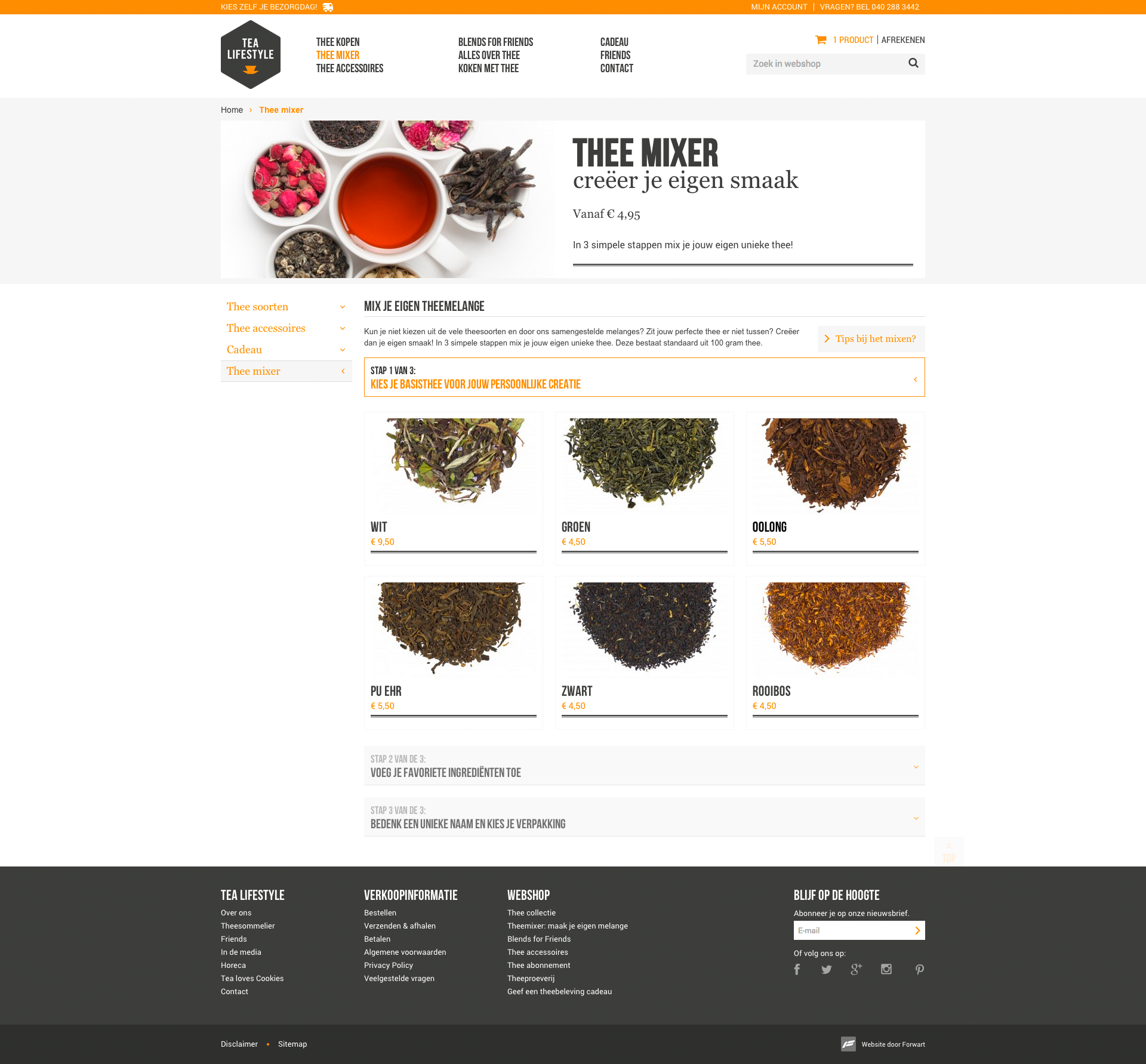 Naast het standaard assortiment is het bovendien mogelijk om op een interactieve wijze online eigen theemelanges te creëren. Een bezoeker kan diverse stappen doorlopen waarmee deze een basisthee aanvult met diverse extra ingrediënten. Door de vele combinatiemogelijkheden zijn er bepaalde smaken die minder goed combineren. Om te voorkomen dat een theemelange gecreëerd wordt die niet lekker is worden voorgeselecteerde combinaties gepresenteerd. Hierdoor is het voor een bezoeker eenvoudig om een lekkere combinatie te bestellen. Dit is ook een unieke cadeautip en kan gepersonaliseerd met naam geleverd worden.
