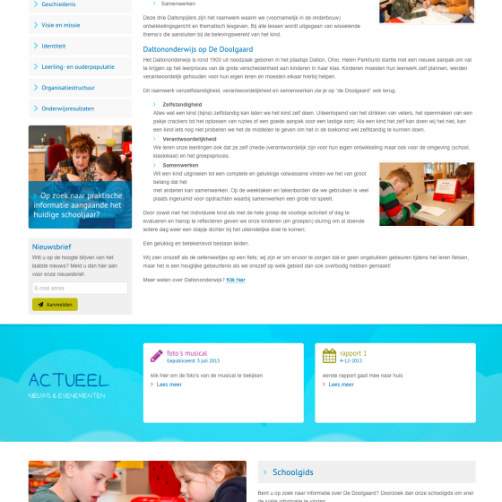 Encore is verantwoordelijk voor de conceptonwikkeling, grafisch ontwerp, technische realisatie, hosting en beheeromgeving waarmee de opdrachtgever de inhoud van de website zelf op een gebruiksvriendelijke manier tot in detail zelf kan aanpassen. Bovendien wordt er via MailChimp periodiek een mooie en overzichtelijk nieuwsbrief verzonden aan alle geïnteresseerden. In het nieuwe schooljaar wordt de website uitgebreid met een intranet voor zowel leerlingen, ouders als teamleden.