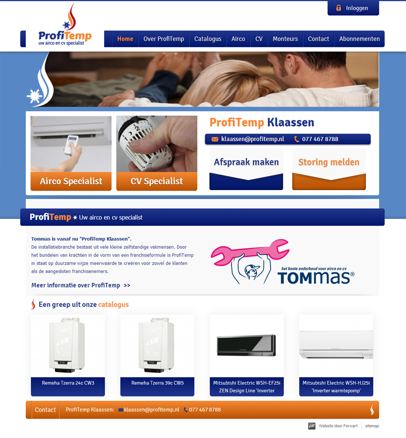 Encore heeft de nieuwe website voor ProfiTemp Nederland en de lokale vestigingen gerealiseerd. Naast informatie over de diensten, abonnementen en producten van het bedrijf is de website uitgerust met een geavanceerde klantenportal. De monteurs van ProfiTemp gaan met hun iPad op pad en beschikken daarbij over de volledige klantenadministratie en –historie, krijgen inzicht in de planning van werkzaamheden en registreren onderdelen die vervangen zijn tijdens onderhoudswerkzaamheden.