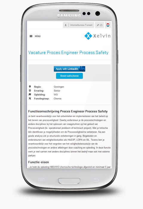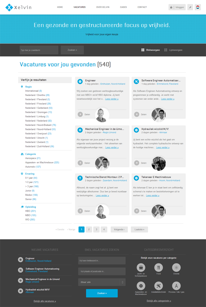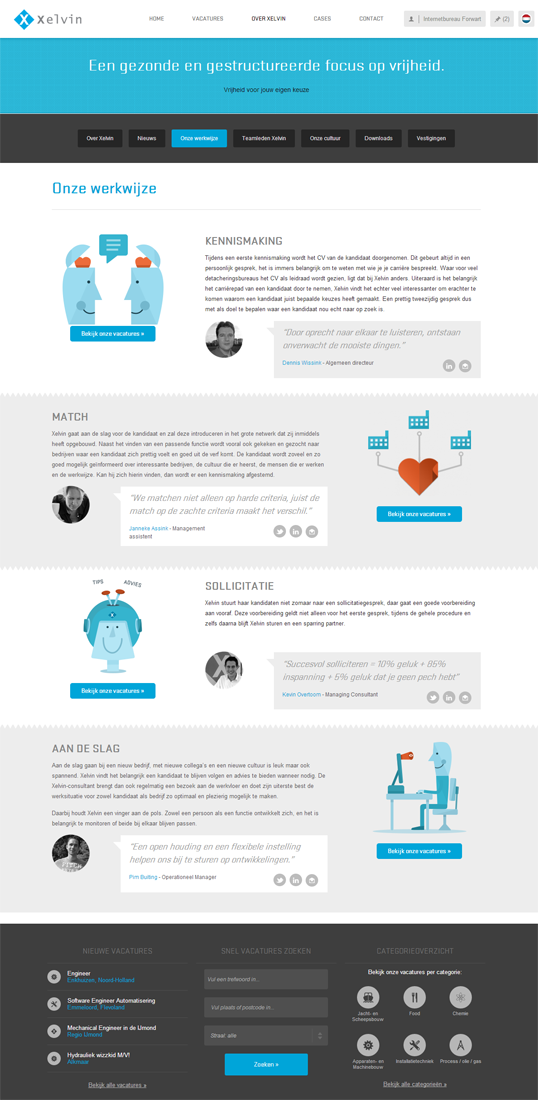 Het grafisch ontwerp is gerealiseerd door het merkenbureau van Xelvin en door Encore geoptimaliseerd en responsive uitgevoerd. De website bevat koppelingen met het vacature- en sollicitatiesysteem van Xelvin waardoor nieuwe vacatures automatisch op de website verschijnen en sollicitaties direct doorgezet worden. Kandidaten kunnen bovendien solliciteren via LinkedIn waarmee hun gegevens met één druk op de knop gedeeld worden met Xelvin.