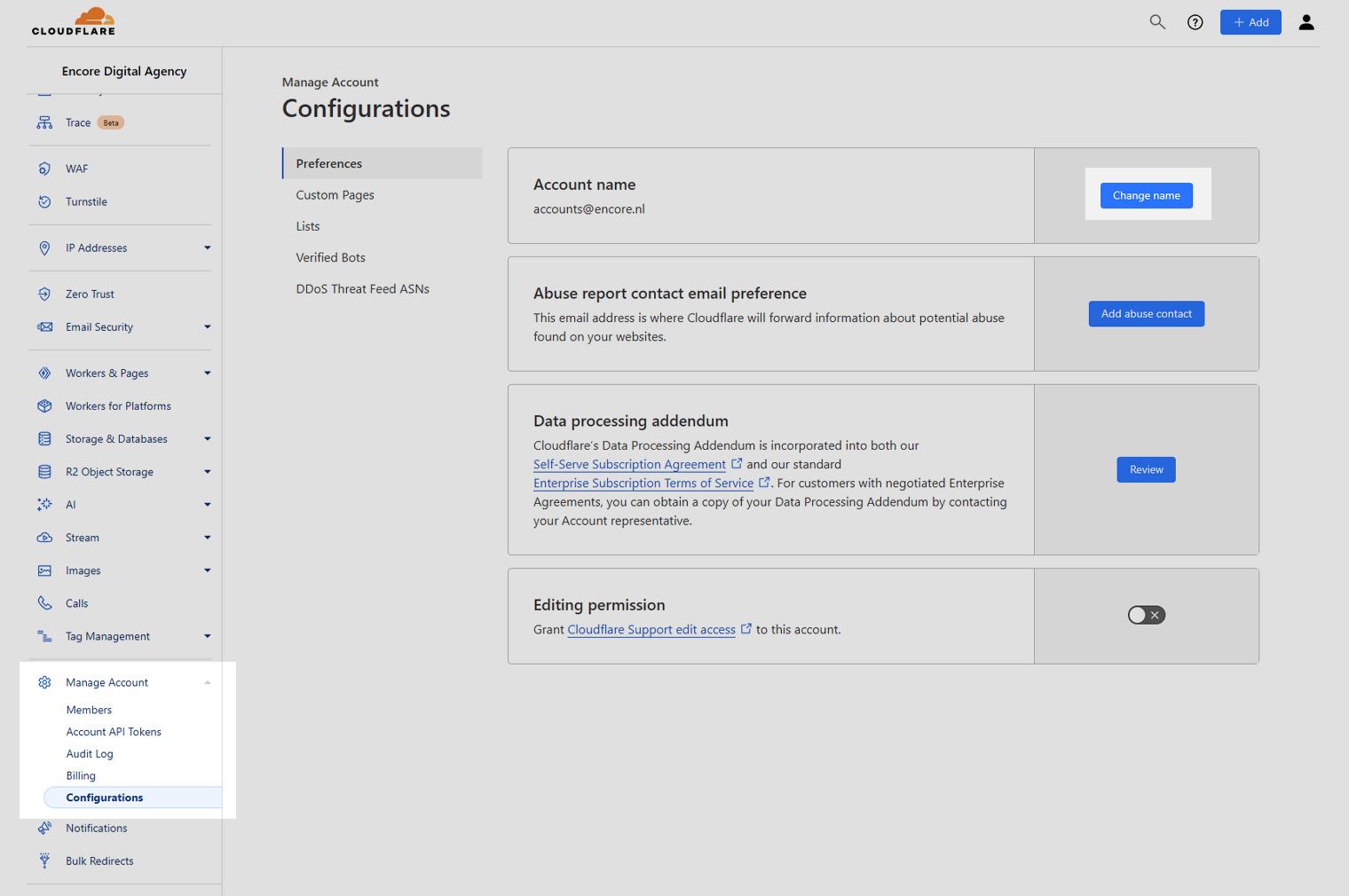 - Kies in het menu links onder Manage Account voor Configurations