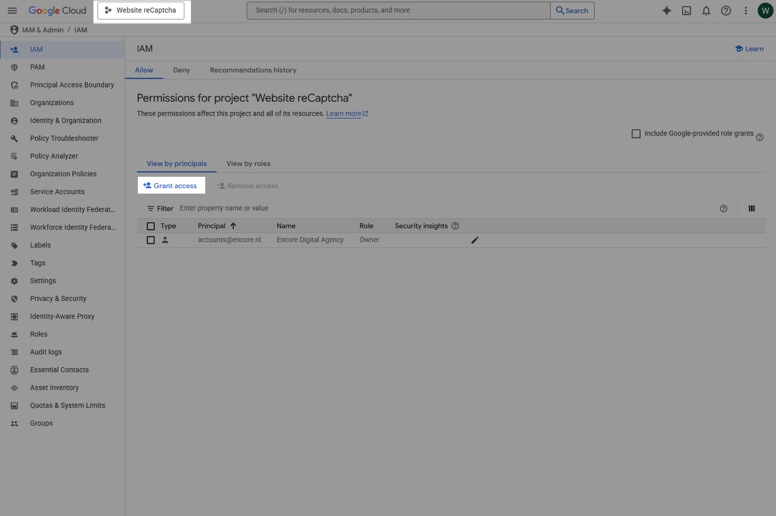 - Klik dan op Grant access.
