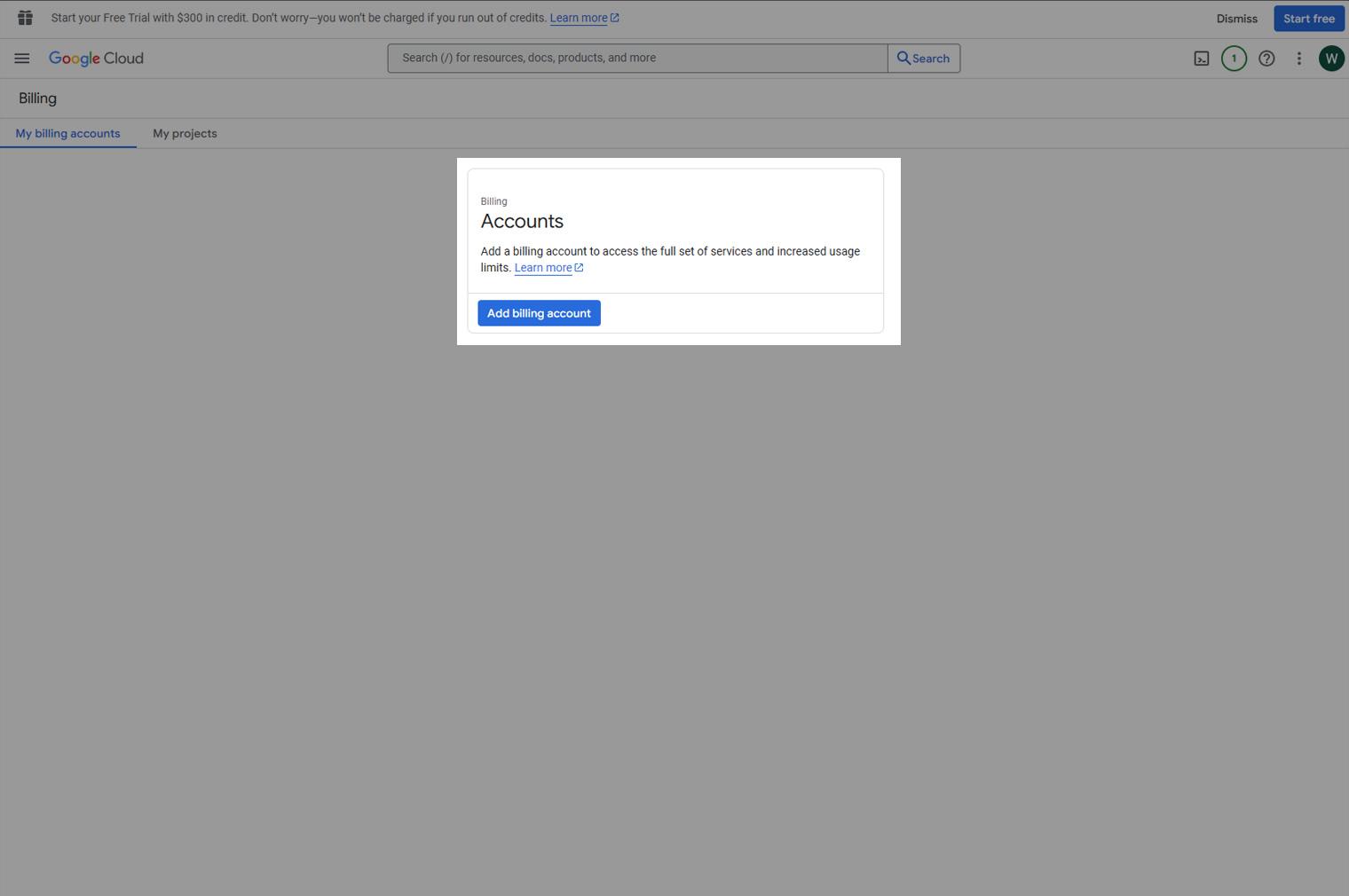- Klik op Add billing account.