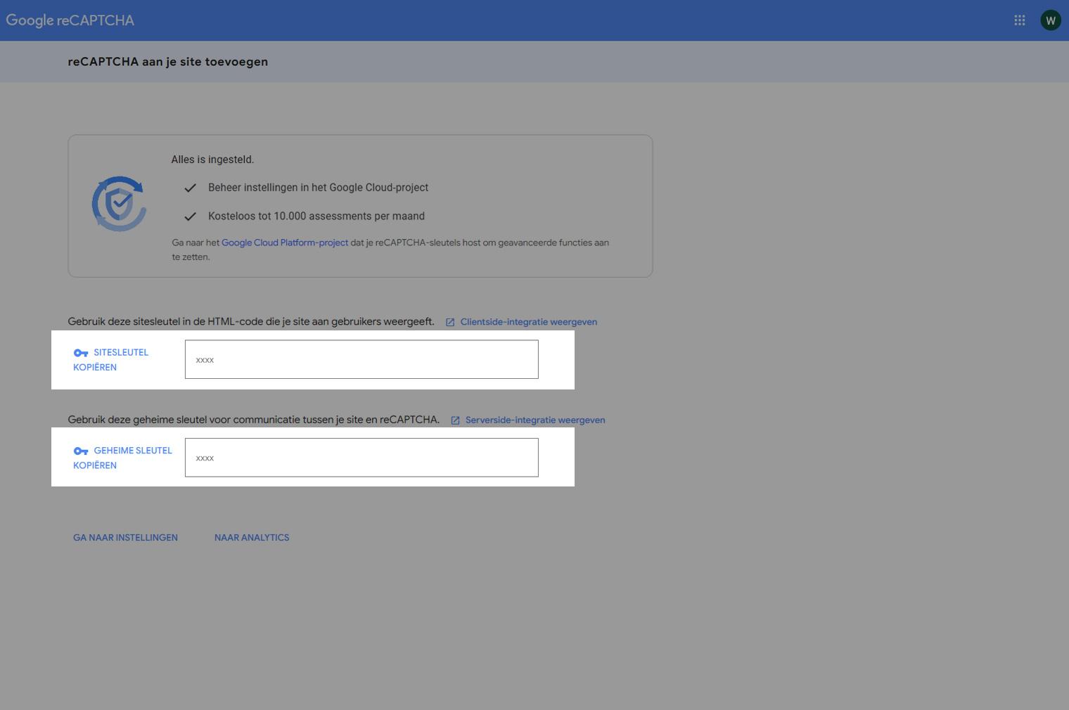 Google reCAPTCHA aanmaken