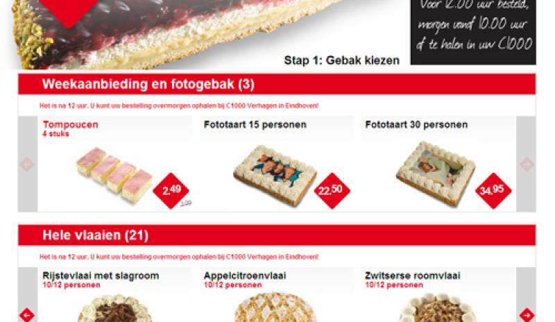 Het bestellen van gebak werkt snel en simpel: in slechts drie stappen. De bestelling kan de volgende dag al afgehaald worden bij een lokale C1000 vestiging. Forwart is verantwoordelijk voor de grafisc...