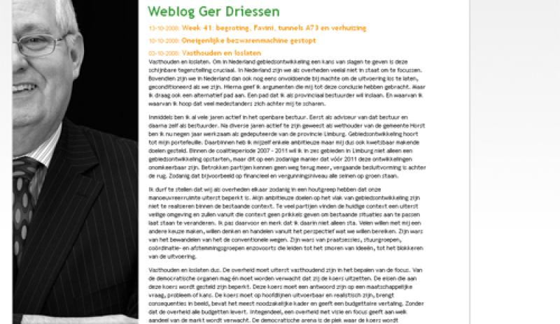 Verleden jaar ontwikkelden wij de website voor Ger Driessen van CDA afdeling Limburg. De website is uitgebreid met een weblog inclusief reactiemogelijkheid. In het weblog worden de activiteiten en erv...