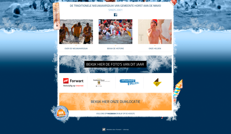 Op nieuwjaarsdag 2014 organiseerde Stichting Cold Turkey voor de veertiende keer de Nieuwjaarsduik Horst a/d Maas. Al sinds 2001 is de stichting verantwoordelijk voor de organisatie van de inmiddels t...