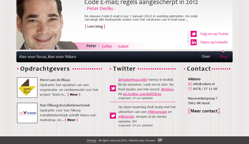 Viduro is een gedreven en strategisch sterk bureau in marketing en communicatie uit Horst. Eigenaar Peter Deriks liet al in 2007 een website realiseren bij Internetbureau Forwart. Deze website werd in...